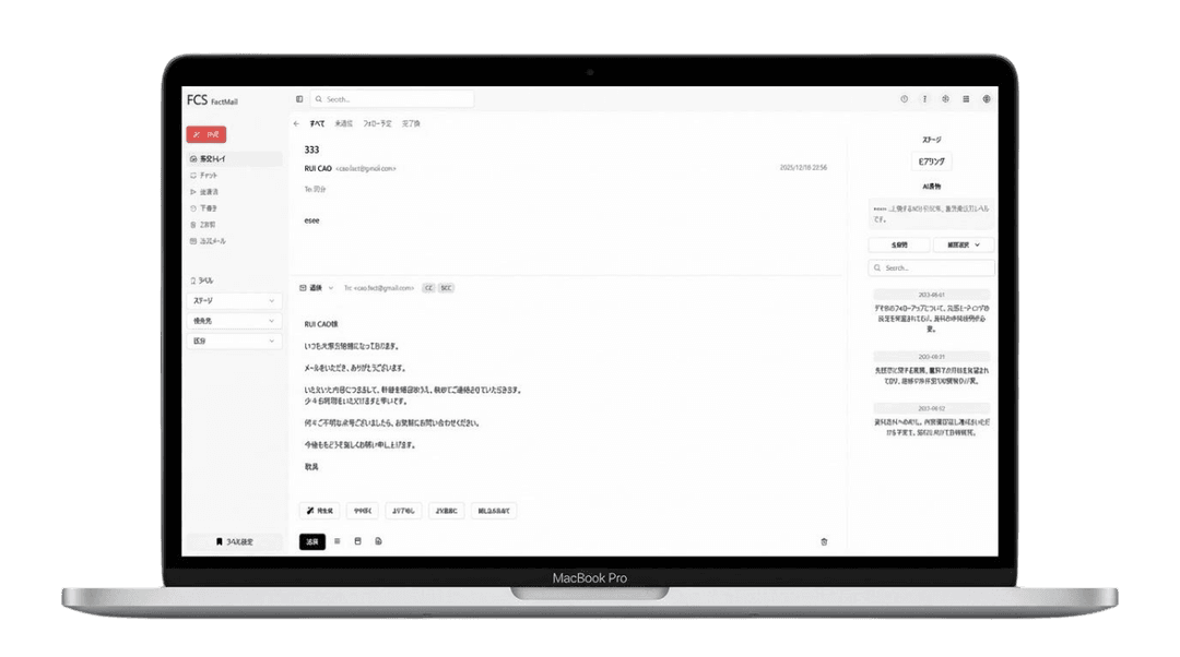 見込み客とのメール・チャット対応をAIが分析し、最適なタイミングで自動フォロー。追客漏れをゼロにし、商談機会を最大化
